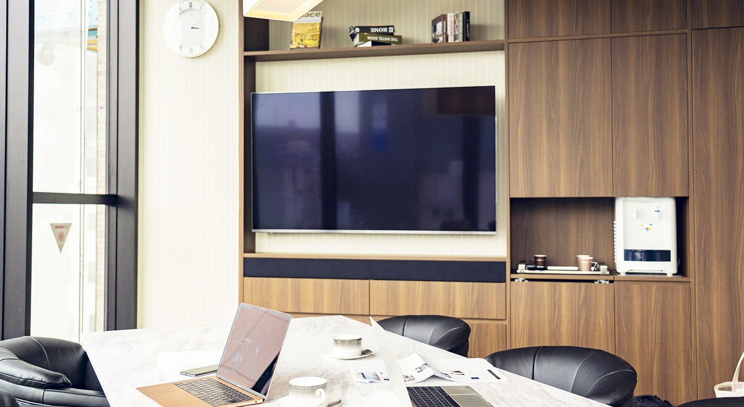 夕日に照らされ、ムーディーな雰囲気での打ち合わせも素敵。ラウンジは大切なお客様との商談スペースとしても最適です。