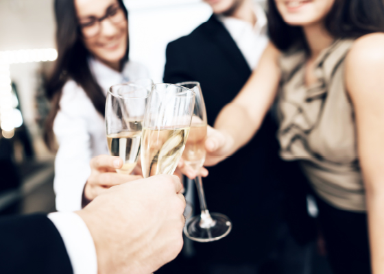 クライアントや仕事仲間とお酒を飲みながらブレイクミーティング。